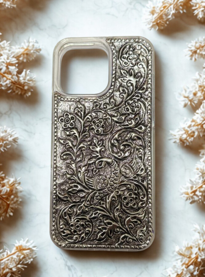 Grace your everyday with celestial beauty through the Aurumé Shen Silver Mobile Cover, a handcrafted treasure made...