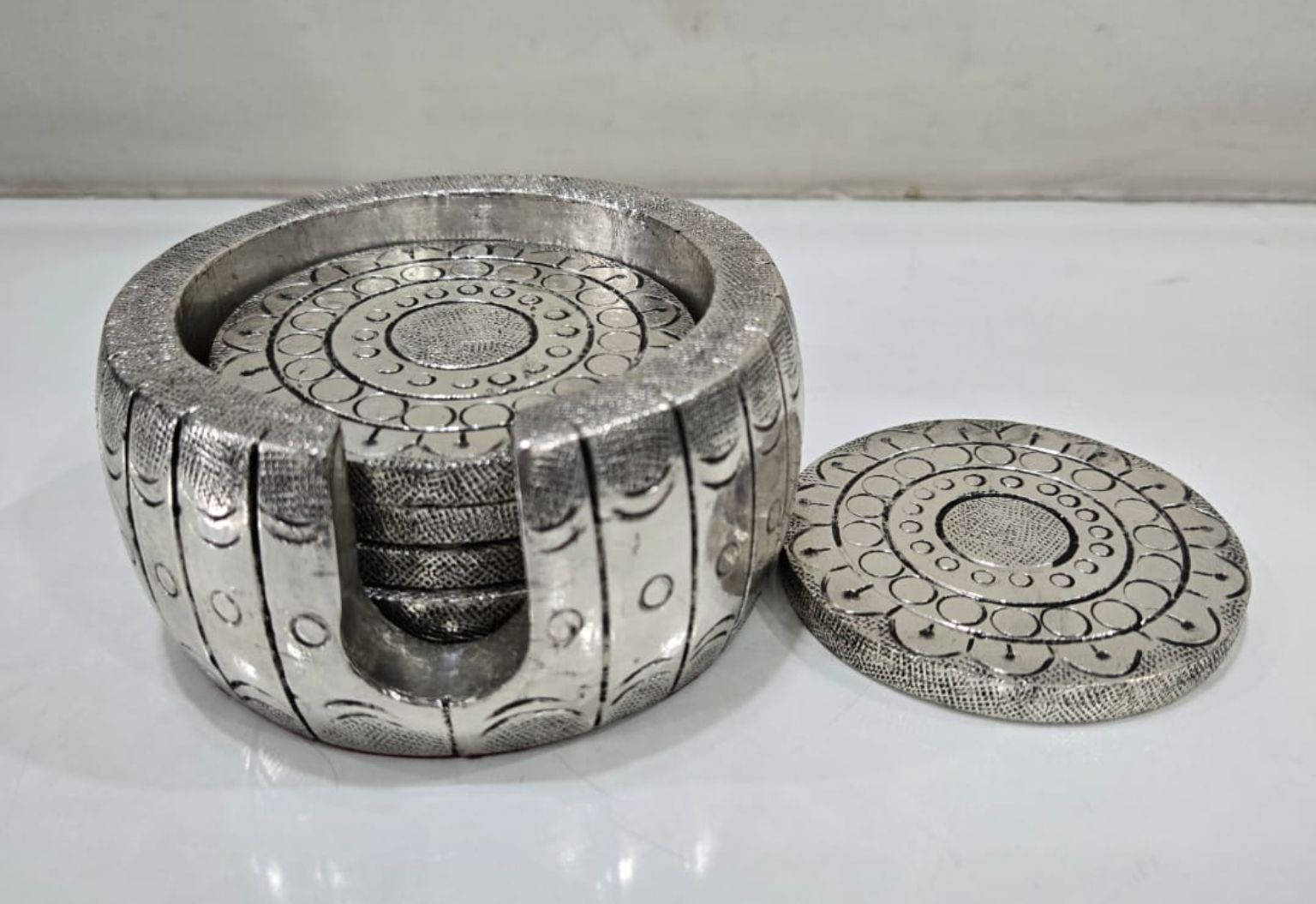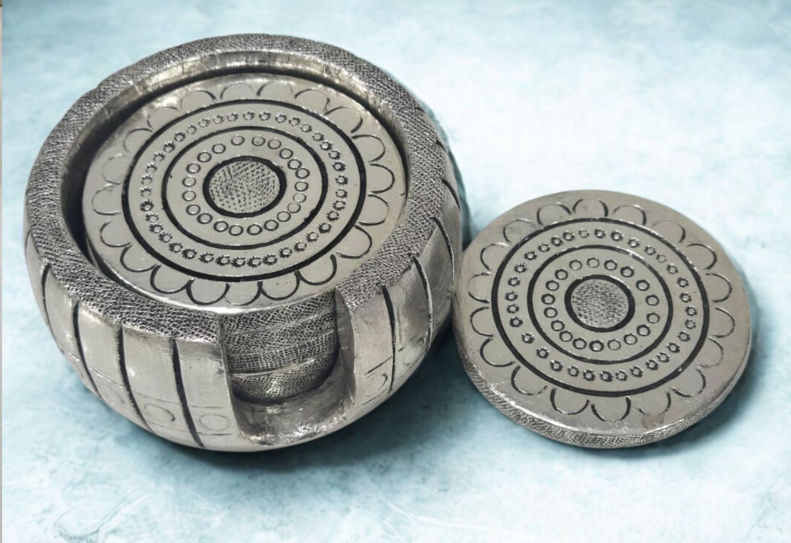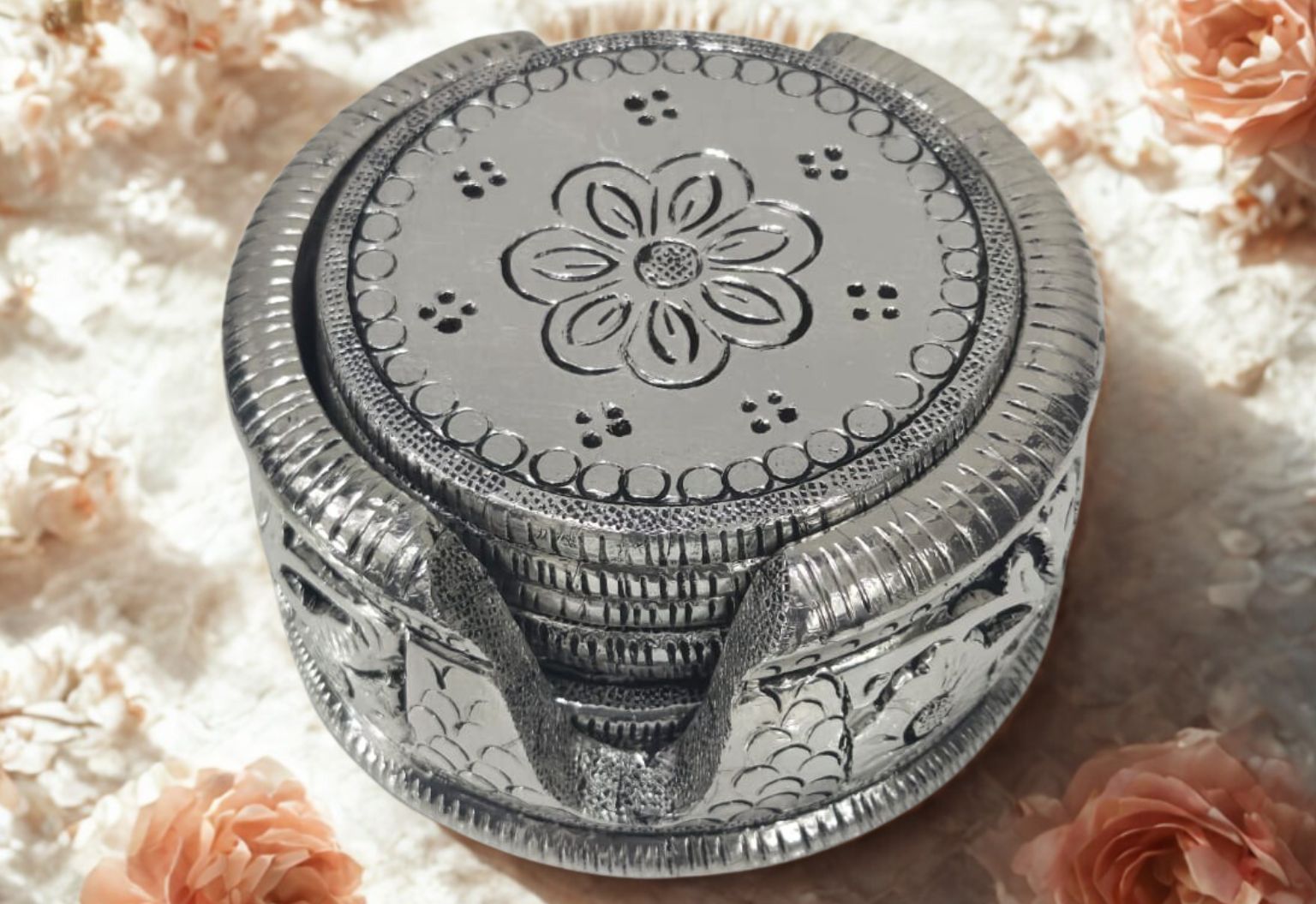 A blend of functional elegance and artistic flair, the Aurumé Silver Hans Coaster Set features a beautifully...