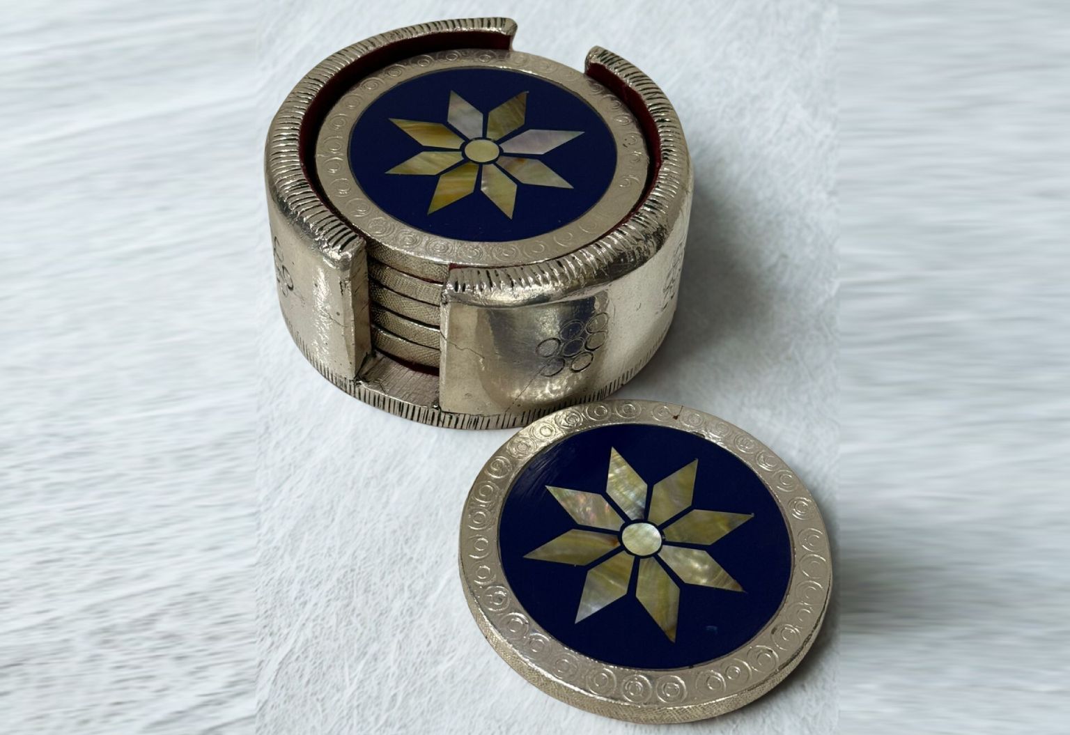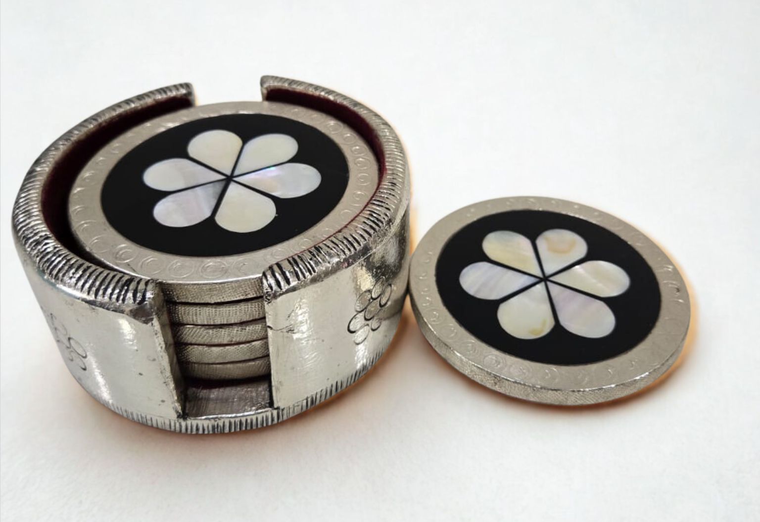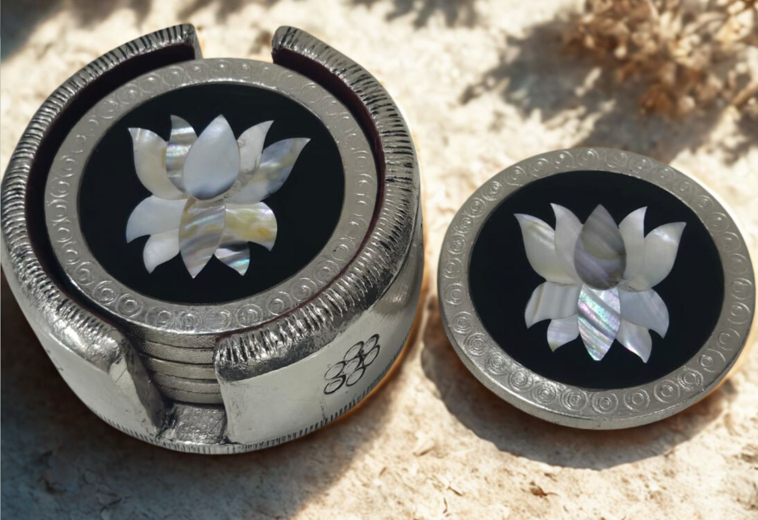 Nook - Silver MOP Coaster - Wood caddling pieces