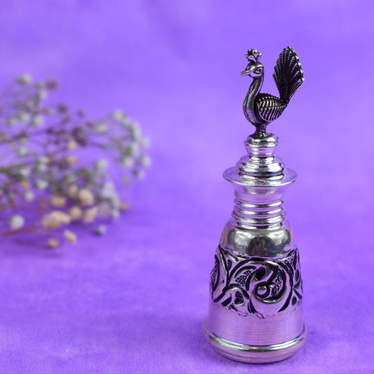 Crafted in antique-finish silver and inspired by traditional Indian heritage, the Shringarika MayurSindoor Dani features intricate engraving...