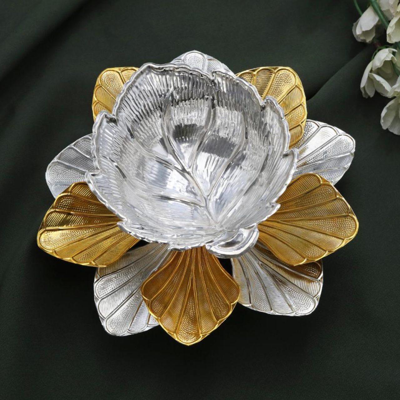 Elevate your sacred space or gifting tradition with the Lotus flame big Bowl— an exquisite handcrafted masterpiece...