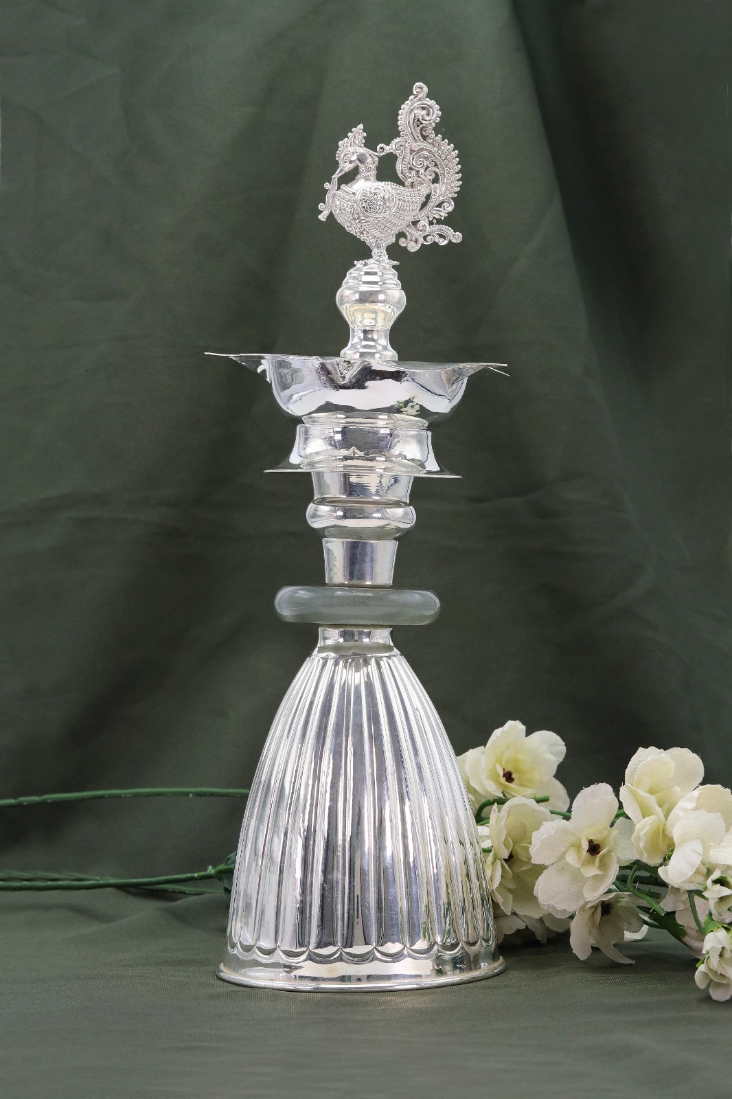 The Kalash, in Indian tradition, is a vessel of life, abundance, and divine energy. Embellished with Goddess Lakshmi motifs, this silver Kalash becomes a symbol of Shubh Laabh (auspicious gain), making it an essential piece for ceremonies, housewarmings, and spiritual spaces.
