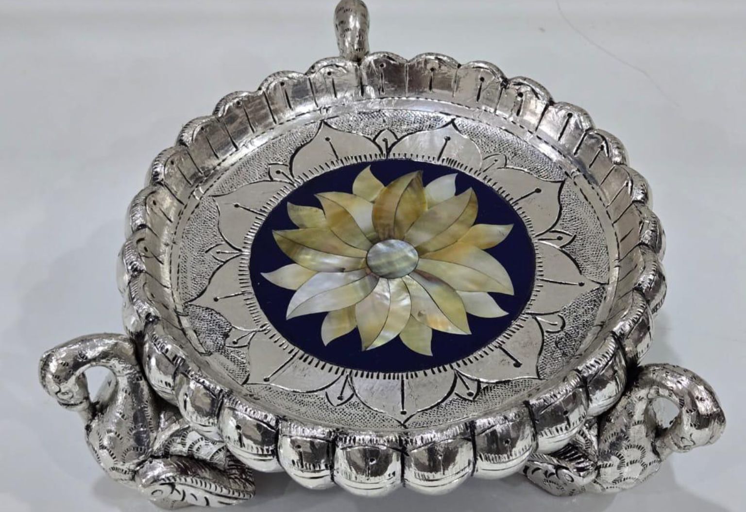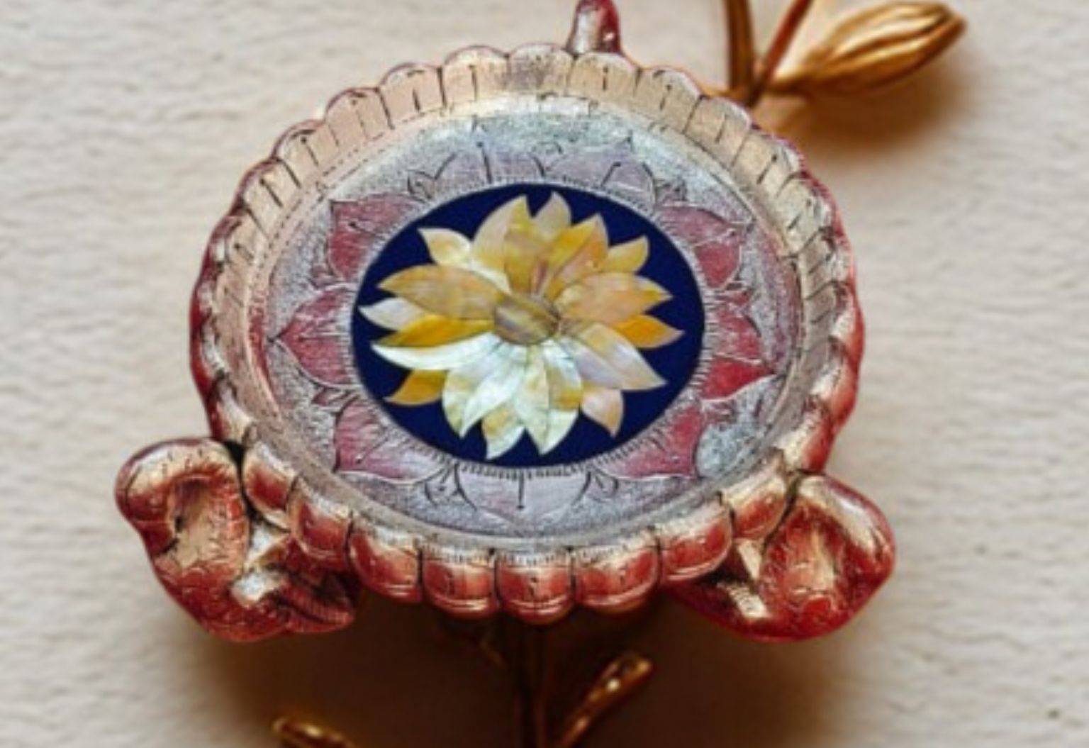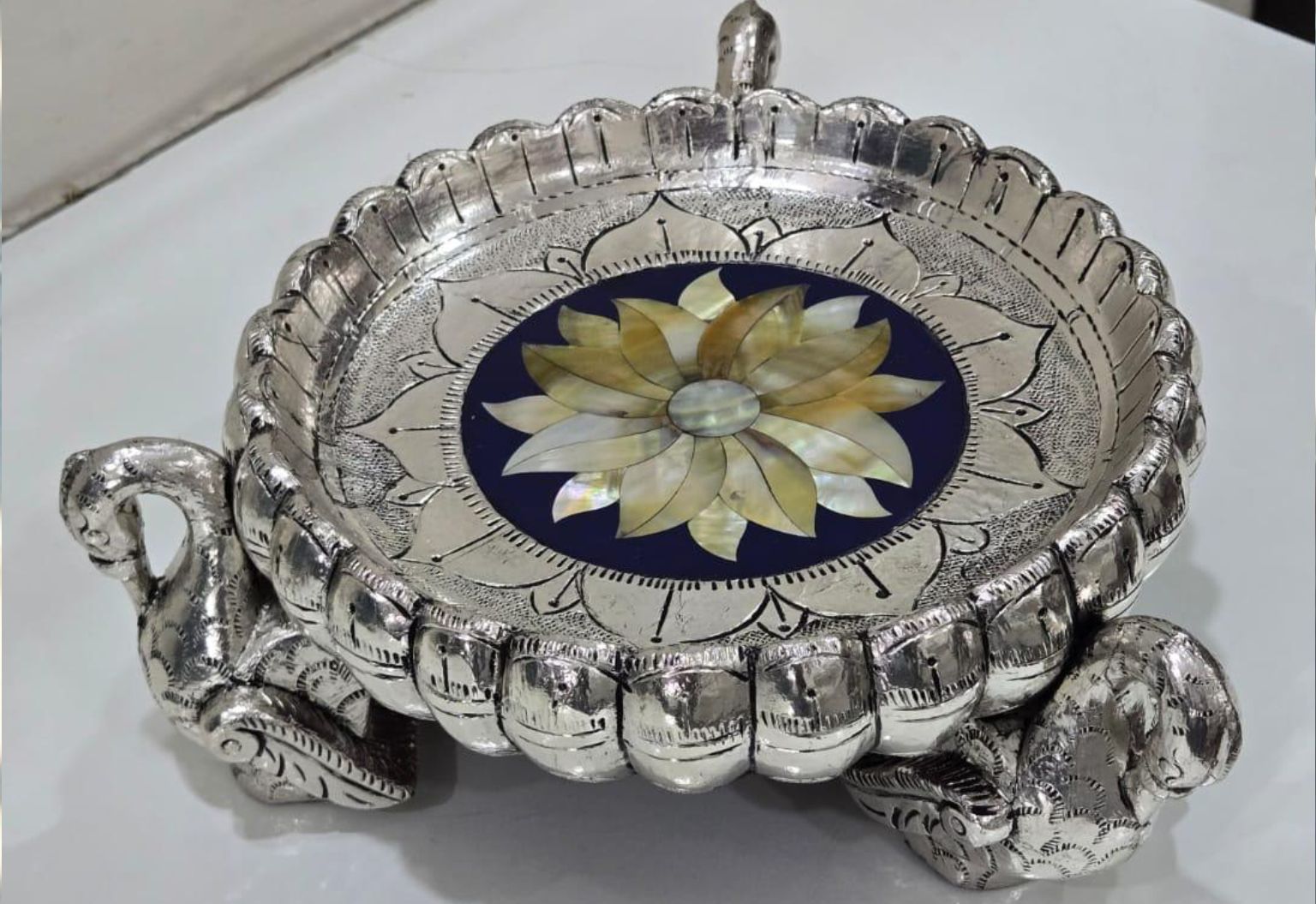 Design: Duck-supported round urli with MOP lotus inlay