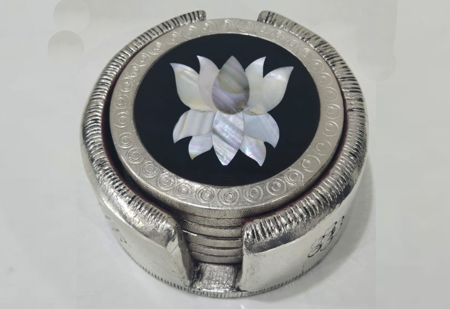 Be the first to review “Aurumé Silver MOP Lotus Coaster Set”