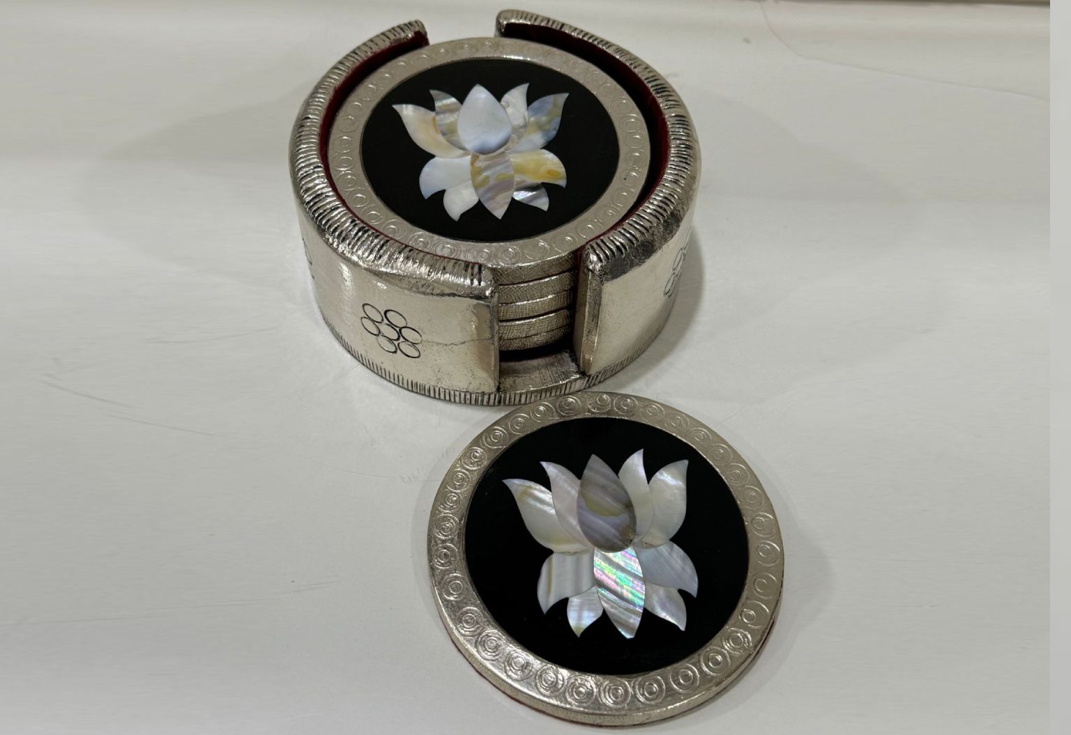 Aurumé Silver MOP Lotus Coaster Set - AURUMÉ SILVER