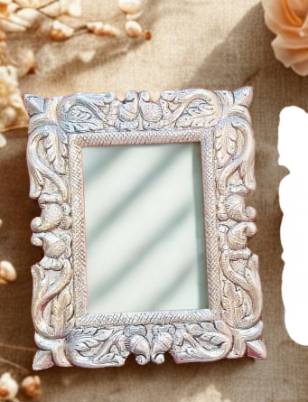 With its antique silver finish and soft sheen, this frame is perfect for holding cherished photographs, divine portraits, or inspirational quotes—adding a refined charm to any interior, whether devotional or decorative.