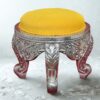 Whether used as a ceremonial seat, pooja pedestal, or as an artistic accent in your home, this handcrafted piece radiates royal charm and cultural heritage, making it a striking blend of utility and artistry. Specifications: Material: Premium Teak Wood with 999 Silver Sheet Overlay Silver Weight: 189 grams Dimensions: 16″ x 16″ Seat: Cushioned top in bright yellow fabric Design: Hand-engraved with traditional ornamental motifs Finish: Antique oxidized silver accents Ideal For: Elevate your rituals with royal grace – Adorn with trust. |