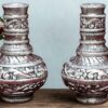 | Bring home a blend of tradition and refinement with the Aurumé Silver Surai Vase, a graceful 8-inch creation handcrafted from premium teak wood and overlaid with 140 grams of pure 999 silver sheet. Inspired by the classical Indian Surai form, this vase is adorned with detailed floral and vine motifs, embossed to perfection by skilled artisans. |