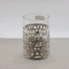 Sip in style with the Trilume Cutwork Glass — a unique fusion of modern design and traditional craftsmanship. This premium tumbler features a crystal-clear glass base wrapped in detailed silver cutwork inspired by geometric jali patterns. The triangular motifs add a bold, contemporary edge while the silver overlay brings a luxurious heritage feel.